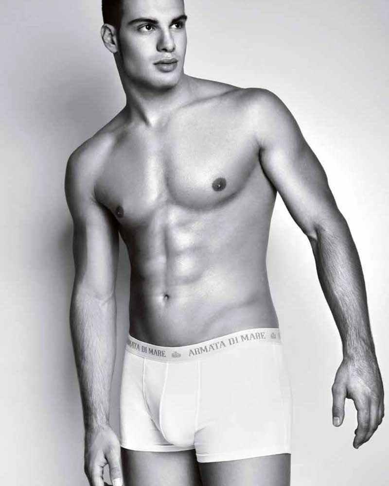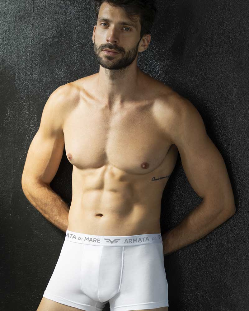 3 Boxer da uomo in morbido cotone elasticizzato, con vita media, taglio classico ed elastico a vista con scritta Armata di Mare.