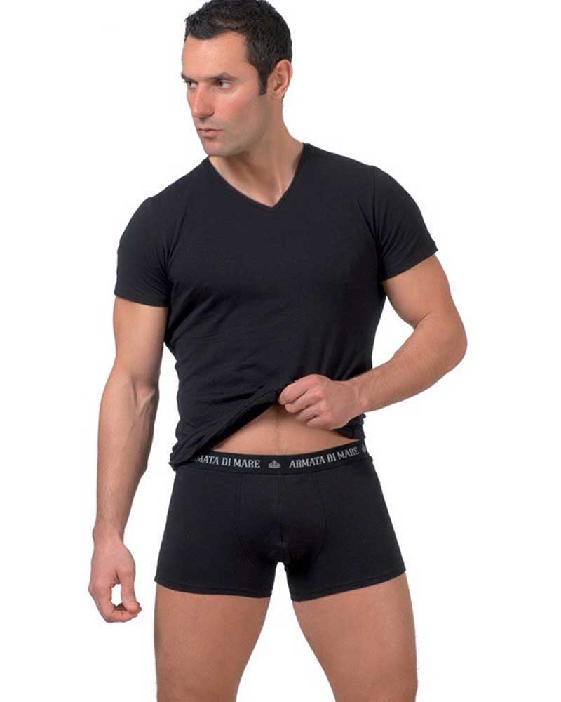 Maglia manica corta girocollo e boxer con elastico a vista con scritta ARMATA DI MARE.