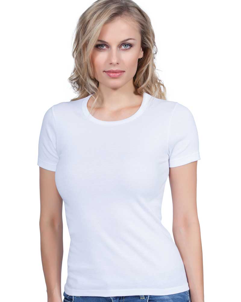 Maglia da donna girocollo con manica corta in puro cotone.