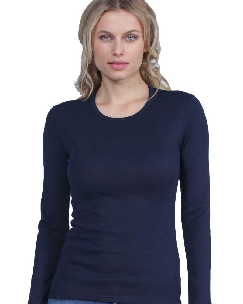 Maglia da donna girocollo con manica lunga in puro cotone invernale garzato.