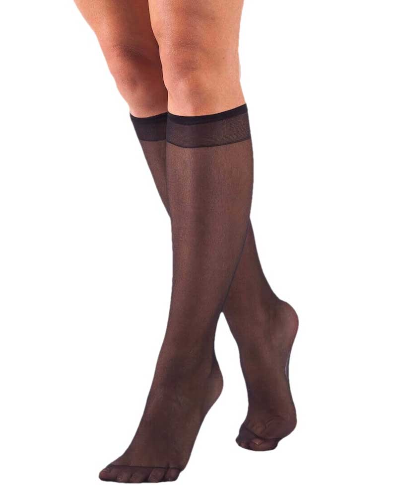 12 Paia di gambaletti 20 Den elasticizzati, velatoi, opachi taglia unica con punta e tallone rinforzati.