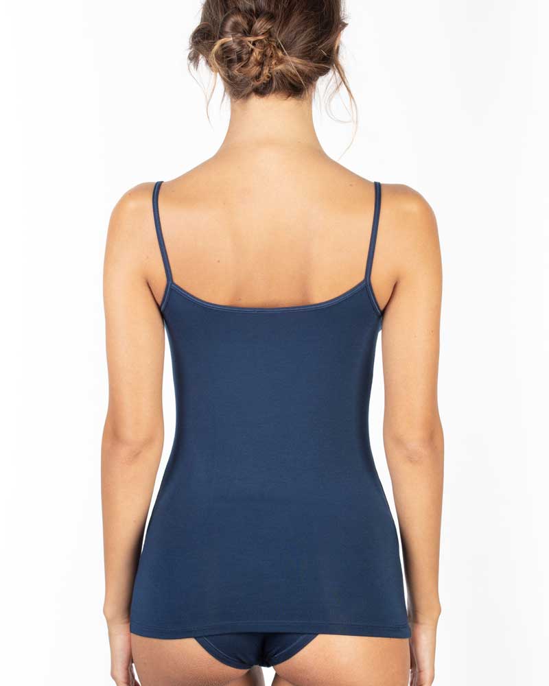 Canotta da donna in morbidissimo micromodal con spallina sottile liscia semplice e scollo tondo.