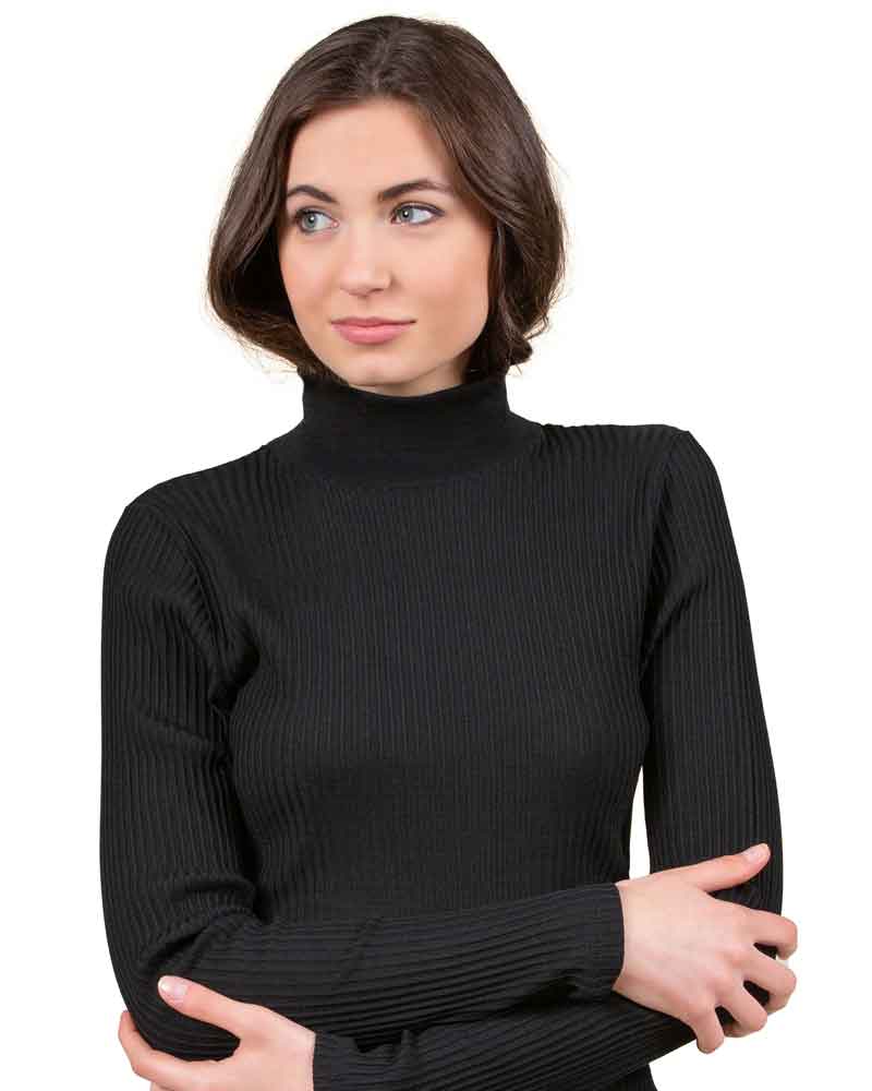 Lupetto a manica lunga in micro lana (Lana e microfibra) su tessuto a costina.