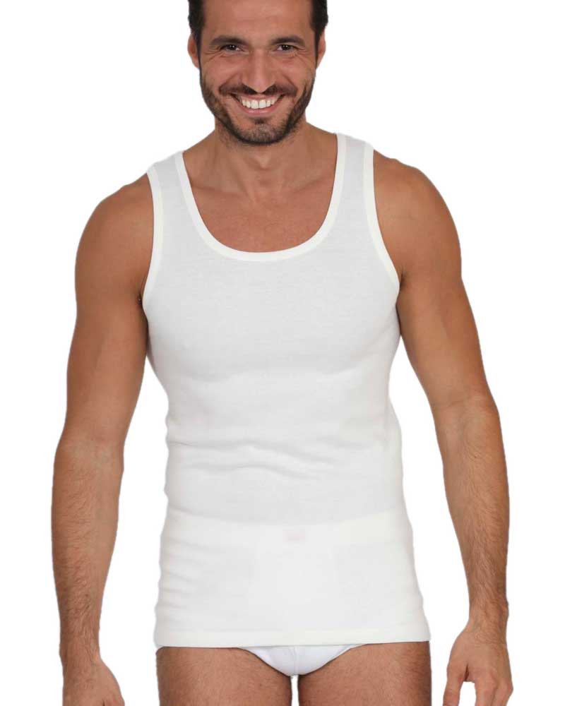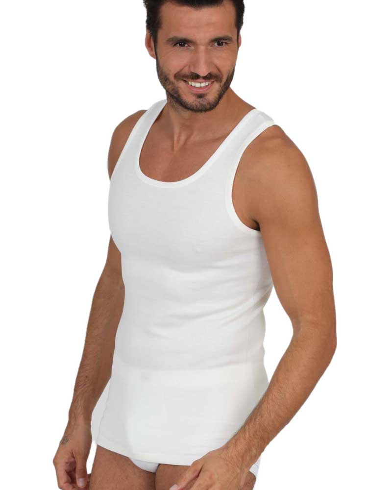 Canotta da uomo in morbida pura lana con spalla larga. Capo di alta qualità prodotto in italia al 100% da un'azienda leader nel settore. Disponibili nelle taglie dalla 4ª alla 7ª in colore bianco lana.