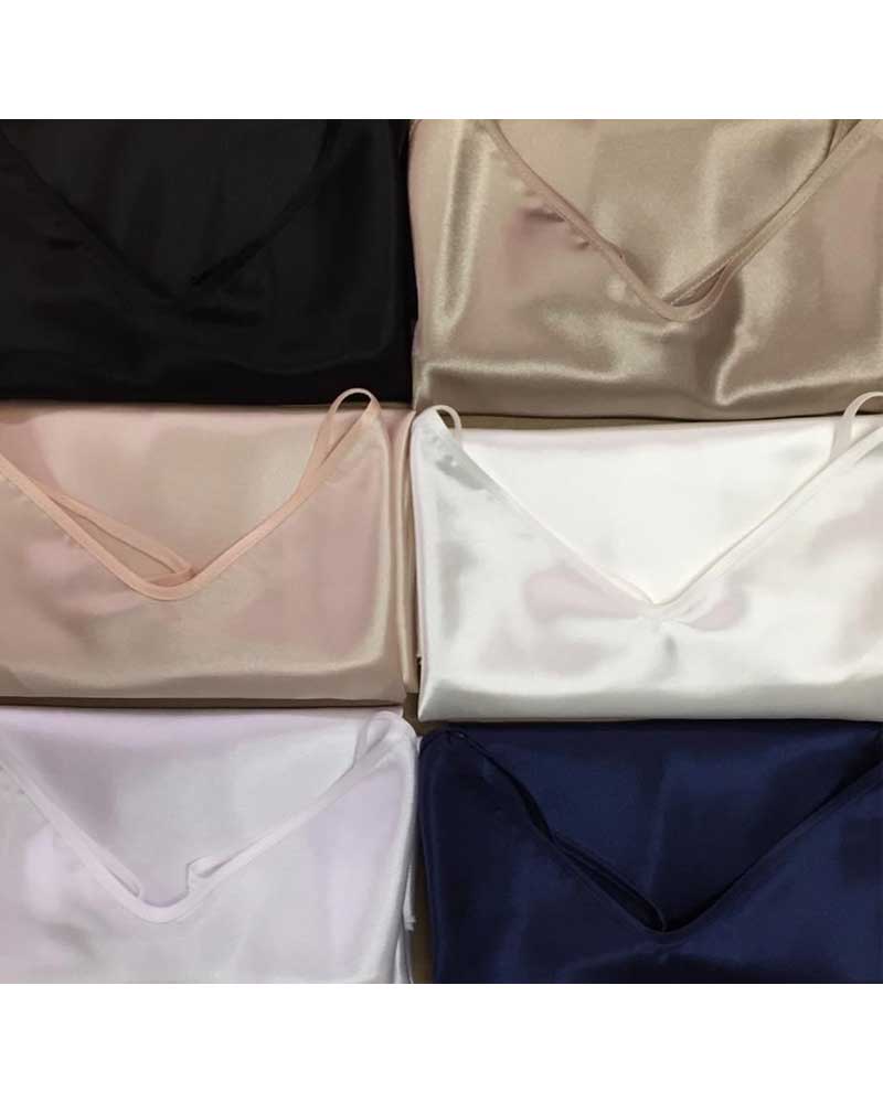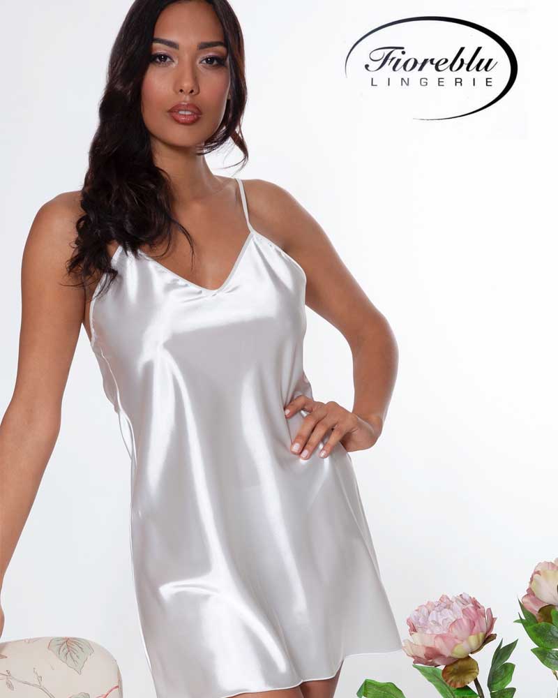 Sottoveste da donna corta in morbido raso setificato con spallina stretta e bordo plissè.