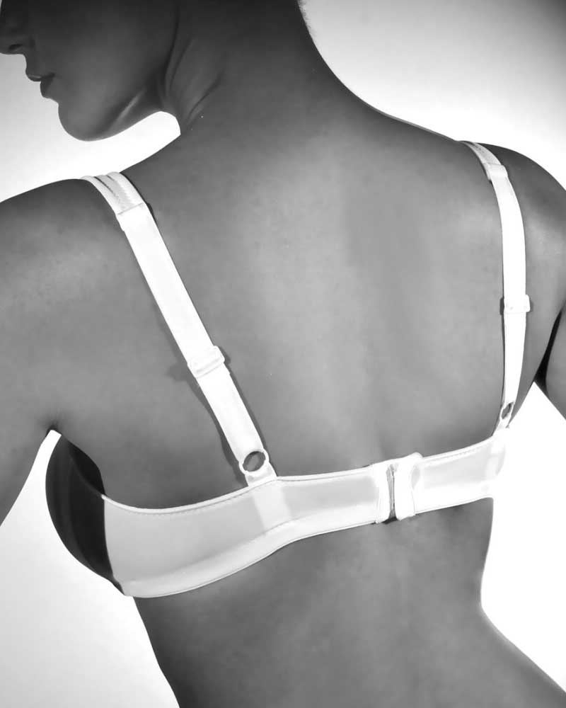 Reggiseno in microfibra liscio semplice con coppe preformare (senza cuciture) in doppio tessuto e spalline integrate un po’ più large per per un maggiore comfort con coppa B.