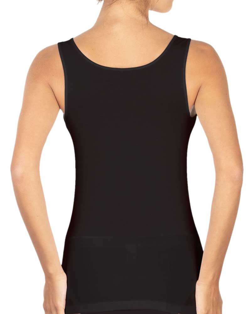 Canotta da donna con spalla larga in morbido filo di Scozia rifinita con pregiato pizzo macramè sulla scollatura.