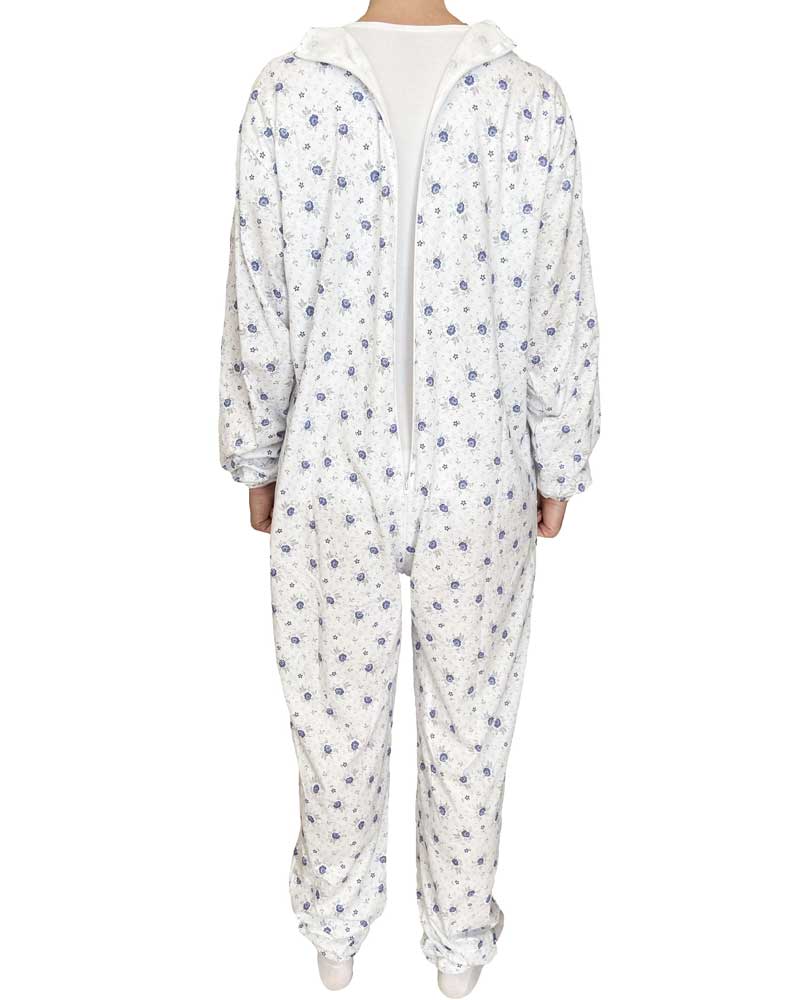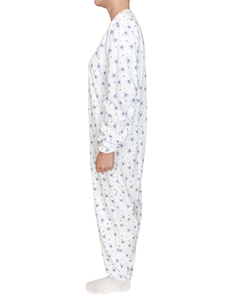 Comoda tuta clinica intera per anziani e lungodegenti a manica lunga, con cuciture rinforzate in cotone leggero estivo.