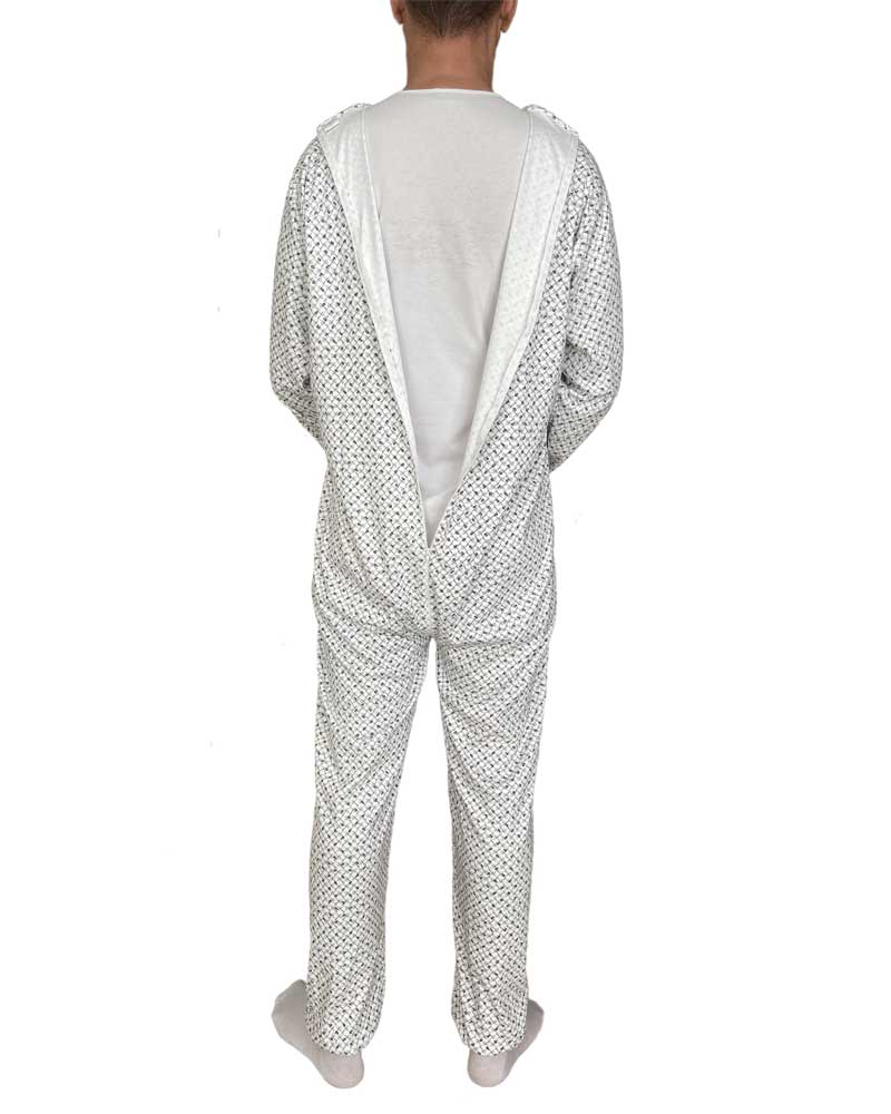 Comoda tuta clinica intera per anziani e lungodegenti a manica lunga, con cuciture rinforzate in cotone invernale interlook.