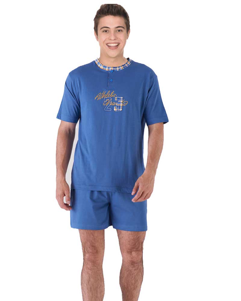Pigiama corto da ragazzo a serafino in jersey di puro cotone.