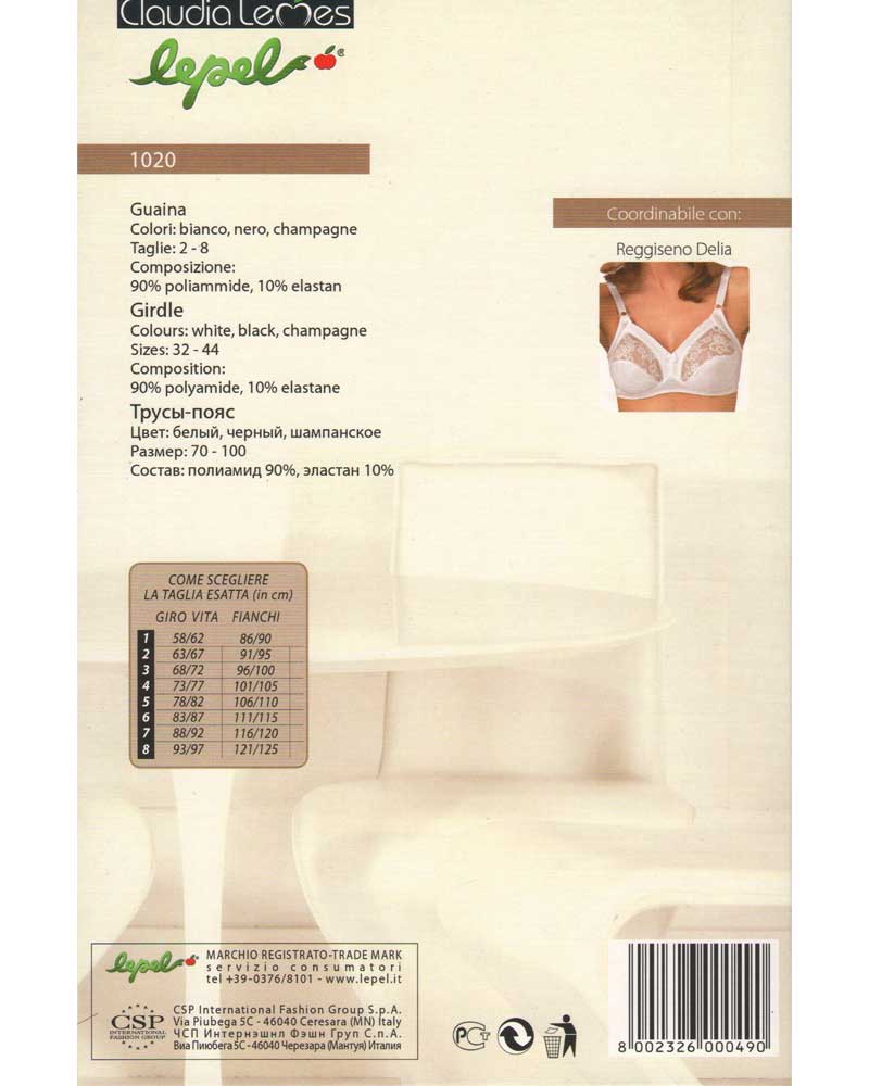 Prodotta nelle taglie dalla 3ª alla 8ª e nei colori bianco, nero e champagne.