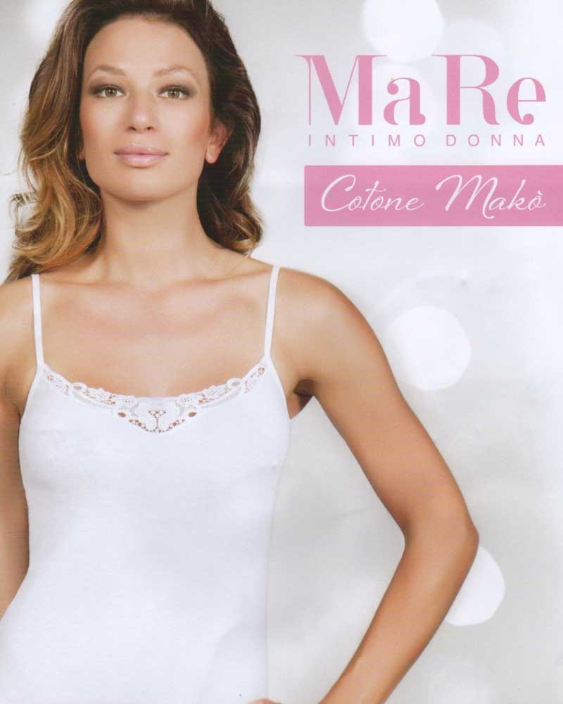 2 Canotte da donna in puro cotone makò con spallina sottile rifinite sulla scollatura in pizzo macramè di cotone.