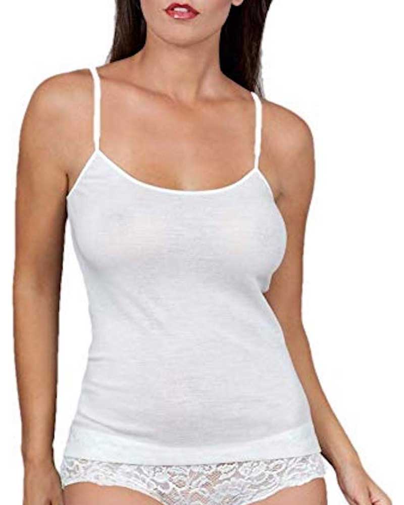 Canotta donna top in morbida microlana con spallina sottile liscia semplice.