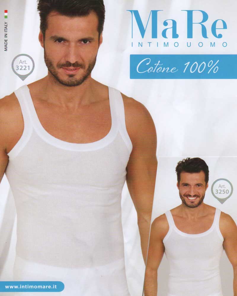 Canotta da uomo con spalla stretta in puro cotone Makò, realizzate su tessuto lavorato a costina.