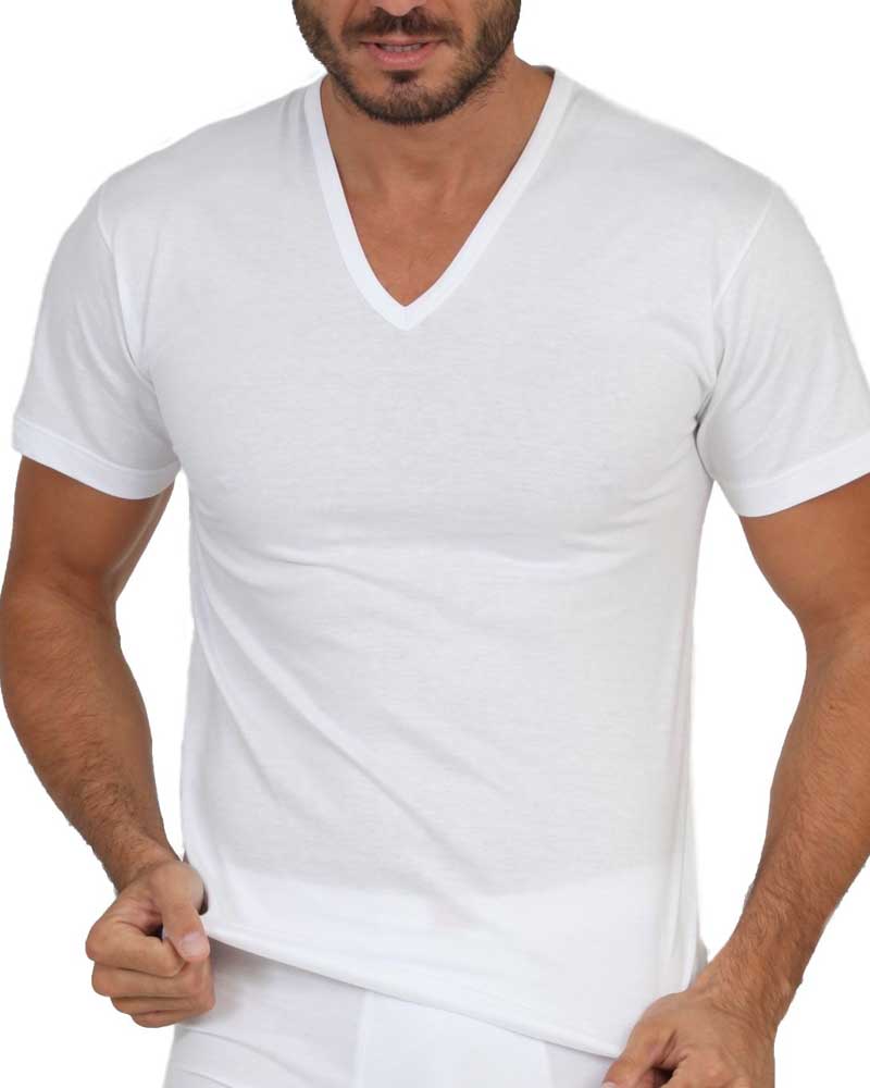 Maglia t-shirt da uomo calibrata maxi scollo a V e manica corta in puro cotone Makò. Capo di alta qualità prodotto in Italia al 100% da una azienda leader nel settore.