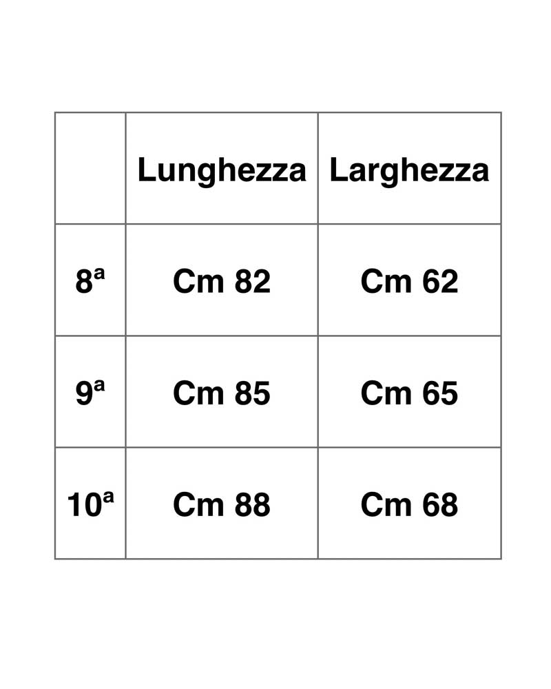 Disponibile nelle taglie dalla 8ª alla 10ª e nei colori bianco e nero.