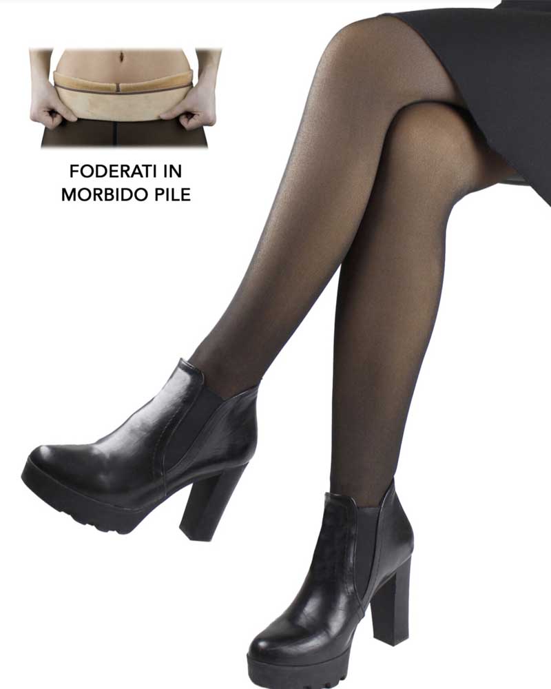 Collant da donna termico invernale in microfibra effetto pelle, con interno imbottito in morbido pile adatto ai giorni piu freddi.