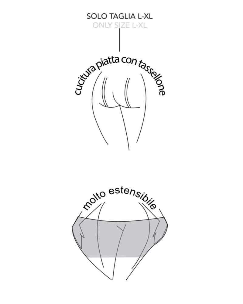 Le taglie L/XL e XXL sono realizzate con tassello per aumentare comfort e vestibilità.