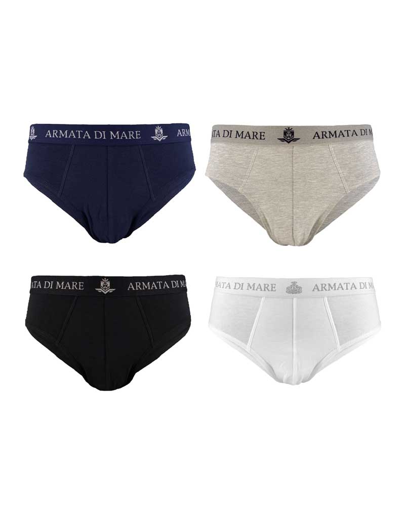 3 Slip da uomo in morbido cotone elasticizzato, con vita media, taglio classico, ed elastico a vista con scritta Armata di mare.
