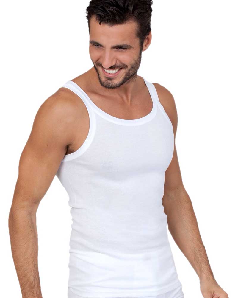 Canotta da uomo in leggero e lucente filo di scozia con spalla stretta.