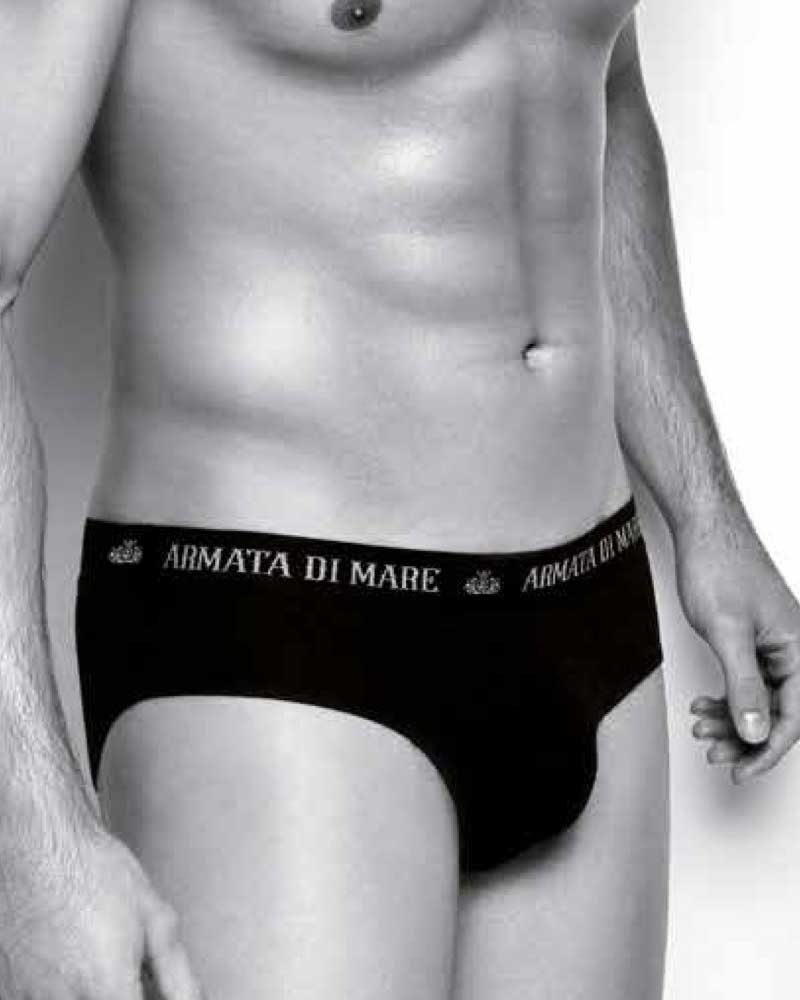 6 Slip da uomo in morbido cotone elasticizzato, con vita media, taglio classico, ed elastico a vista con scritta Armata di mare.