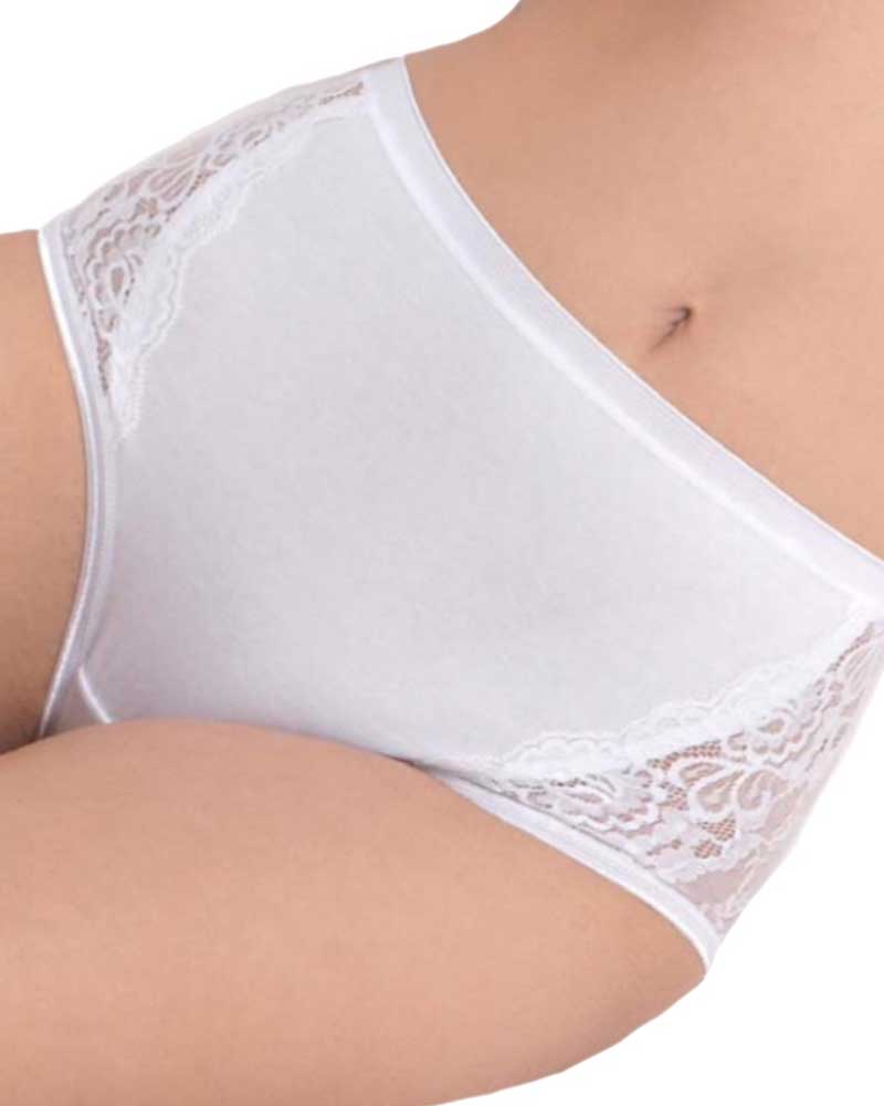 3 Slip coulotte donna in morbido cotone elasticizzato con vita e fianco altI ed inserti in morbido pizzo.
