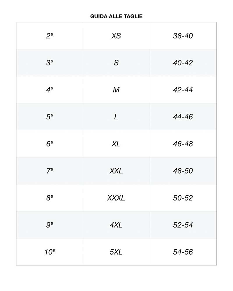 Realizzata nelle tagli dalla 2ª alla 5ª nei colori bianco e nero.
