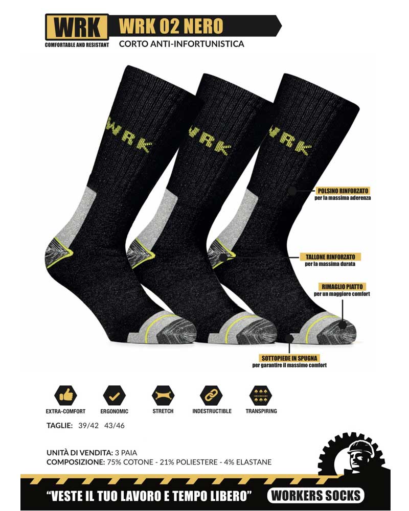 6 Paia di calzini per scarpa antinfortunistica da lavoro a metà polpaccio in spugna di cotone.